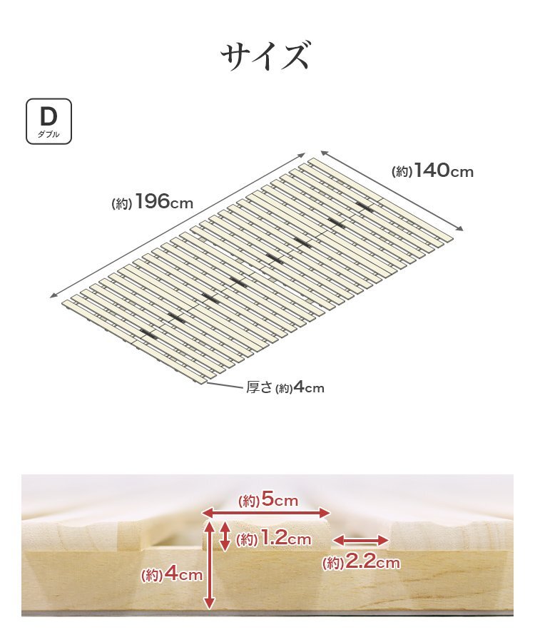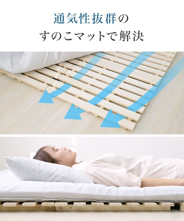 Product name: すのこマット 折りたたみベット すのこベッド ダブル リブあり 折りたたみ 2つ折り ベッドフレーム 湿気 カビ対策 新品 未使用