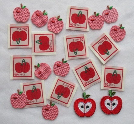 Product name: R21◆アップル◆刺繍タグ 10個・刺繍モチーフ 12個