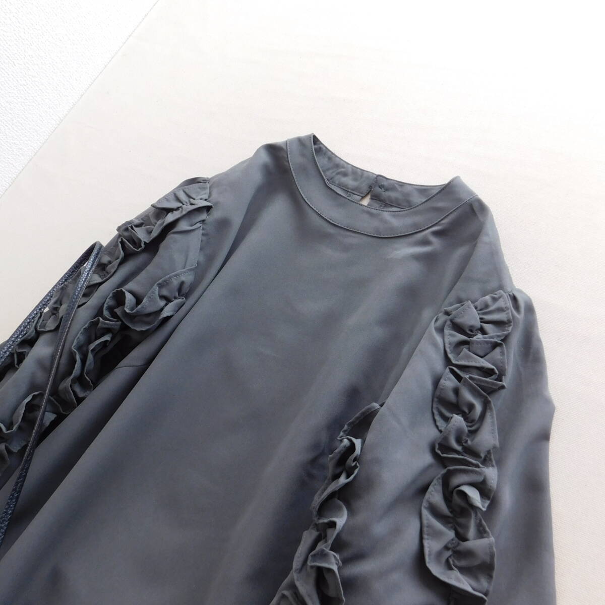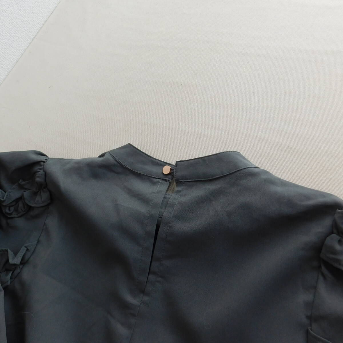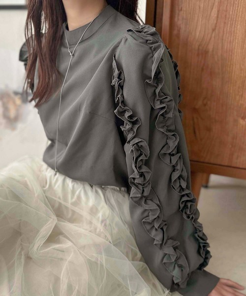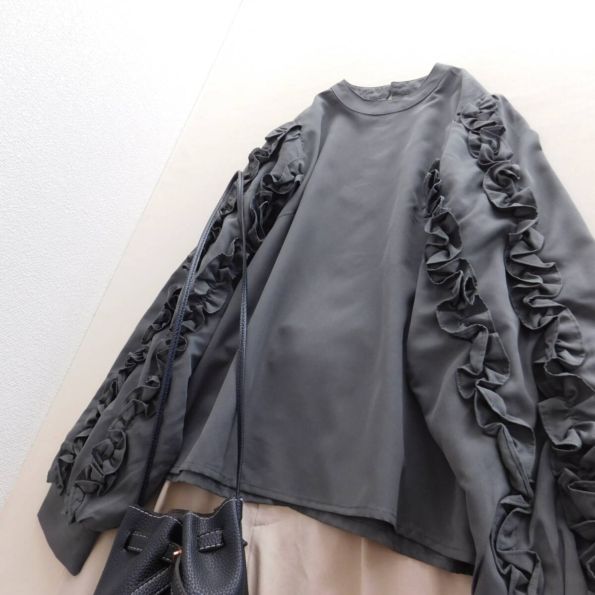チヤコールグレーカラーのフリルのブラウスがかわいいです。