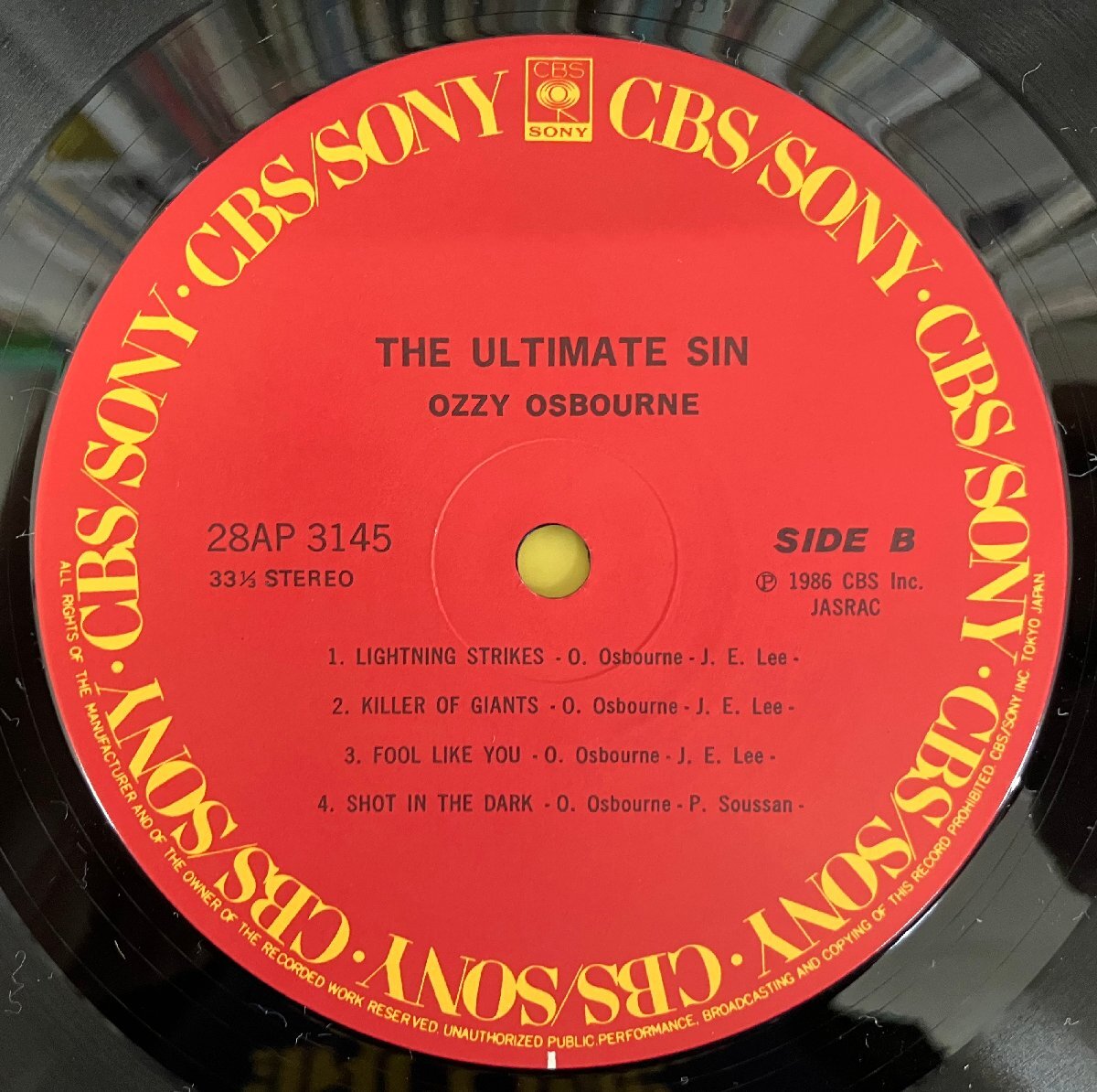 オジー・オズボーン / 罪と罰 28AP 3145 帯付き 限定ステッカー付き!美品![OZZY OSBOURNE / THE ULTIMATE SIN, VINYL]中古レコード