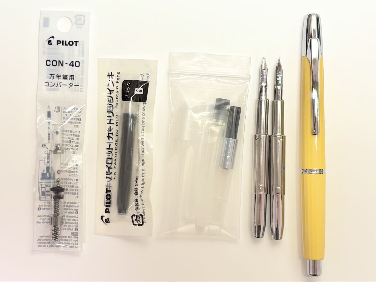 Mjohn(Moonman)のキャップレス風万年筆と、PILOT キャップレスのペン先ユニットです。字幅はそれぞれEFとスタブ(国内未発売)です。
