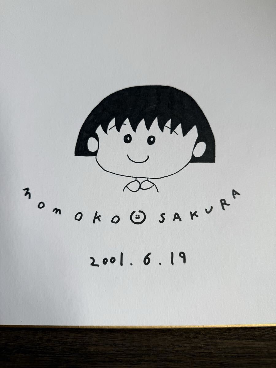 ちびまる子ちゃん作者さくらももこのイラストサイン色紙です。