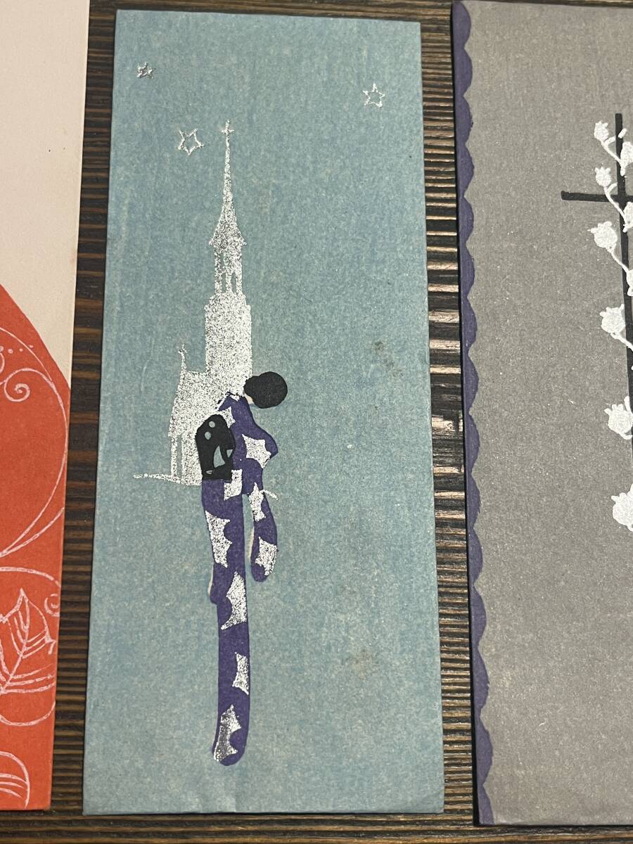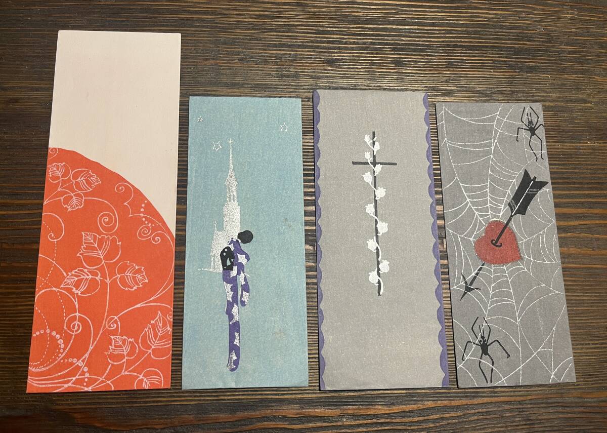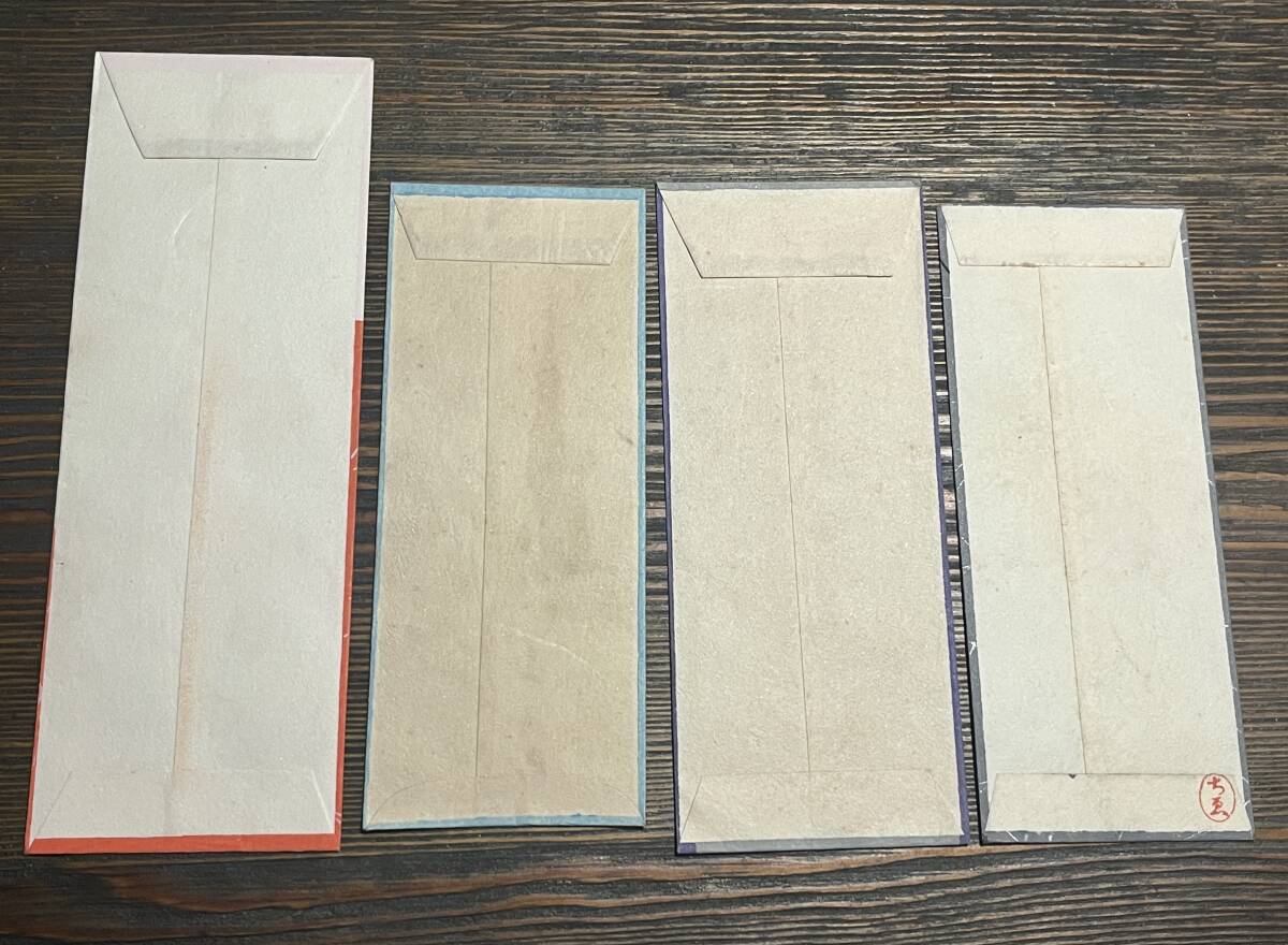 ◆木版画 絵封筒 ぽち袋 4枚 さくら井屋 小林かいち 十字架 蜘蛛 ハート 着物 大正ロマン