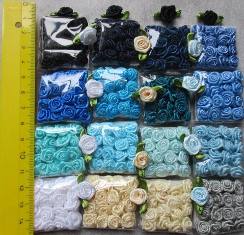 Product name: R70◆薔薇花モチーフ 16色×各16個・葉つき花モチーフ 16個
