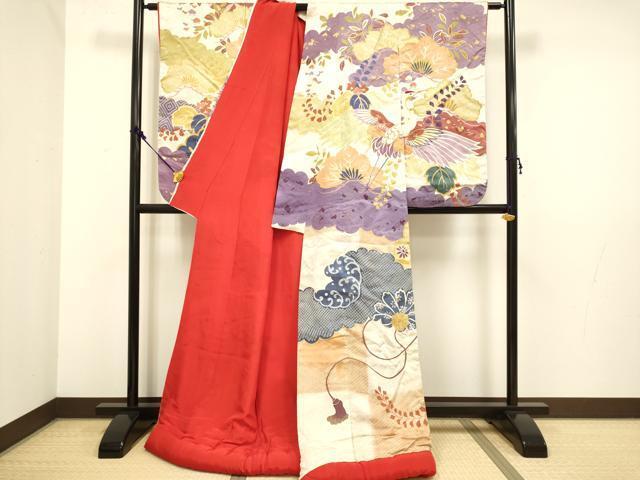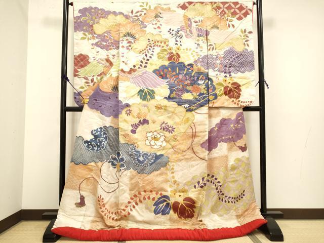 Product name: 平和屋本店▼アンティーク 大正ロマン 色打掛 和装 婚礼 結婚式 花嫁 神社挙式 駒刺繍 飛鶴檜扇花文 金銀彩 逸品 DAAX8005du