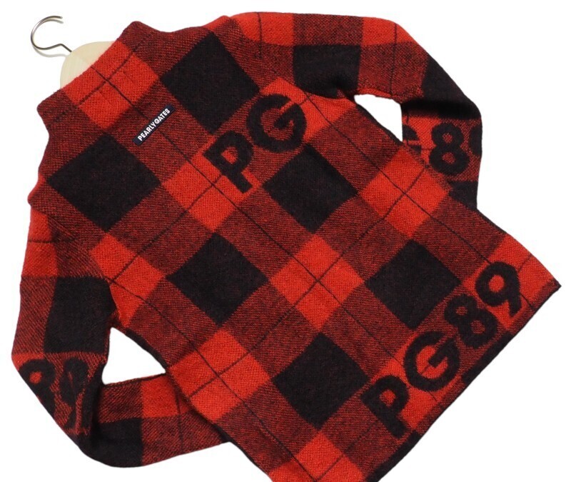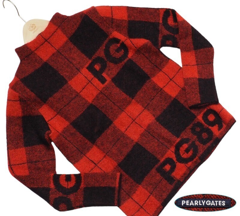 Product name: 新品正規36300円 PEARLY GATES パーリーゲイツ 日本製 モヘア プルオーバー チェック柄 モックネックニット レディース0(S)赤(102) 1270008