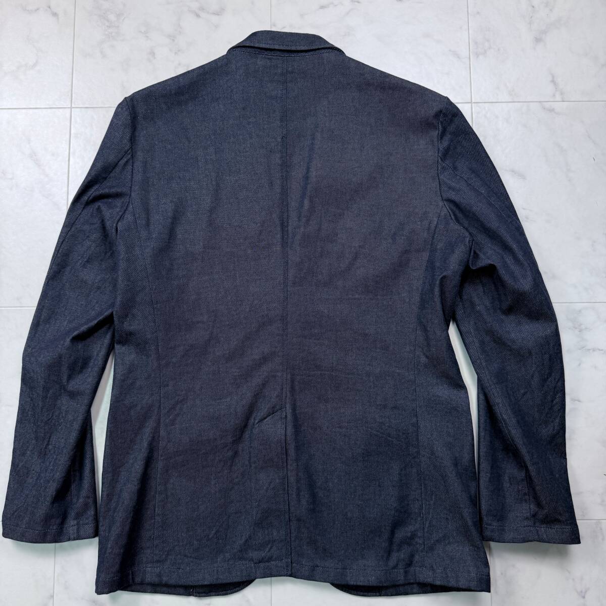 美品 XL TAKEO KIKUCHI タケオキクチ デニム テーラードジャケット ストレッチ ビジネス アンコン シングル 背抜き メンズ ネイビー 紺