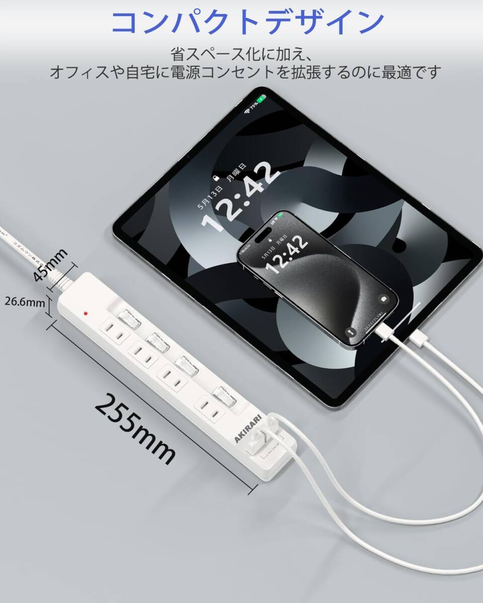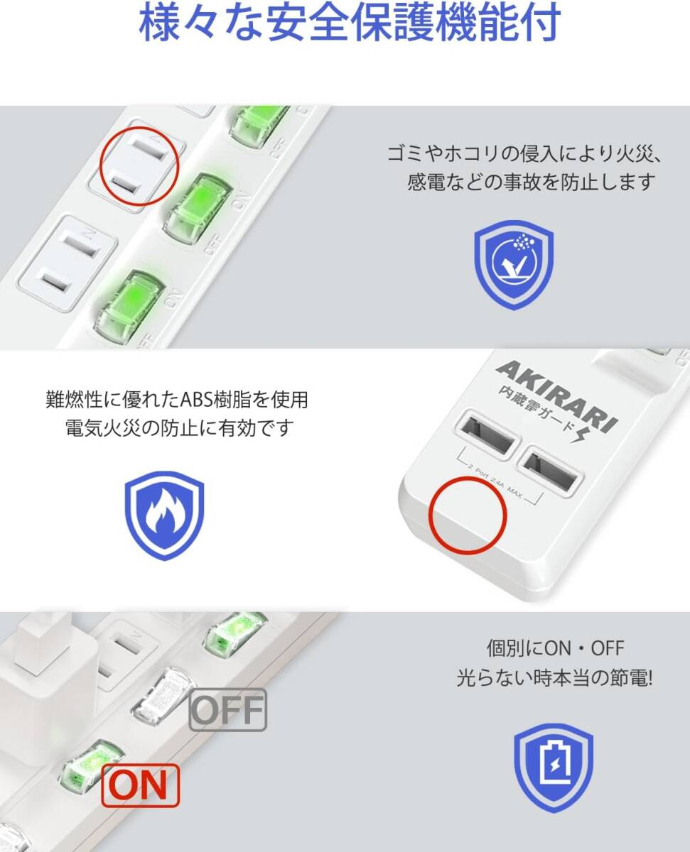 Product name: 1m 電源タップ usb付きコンセントタップ ACコンセント 4口 USB-A 2ポート 個別スイッチ付き USB充電対応  延長コード