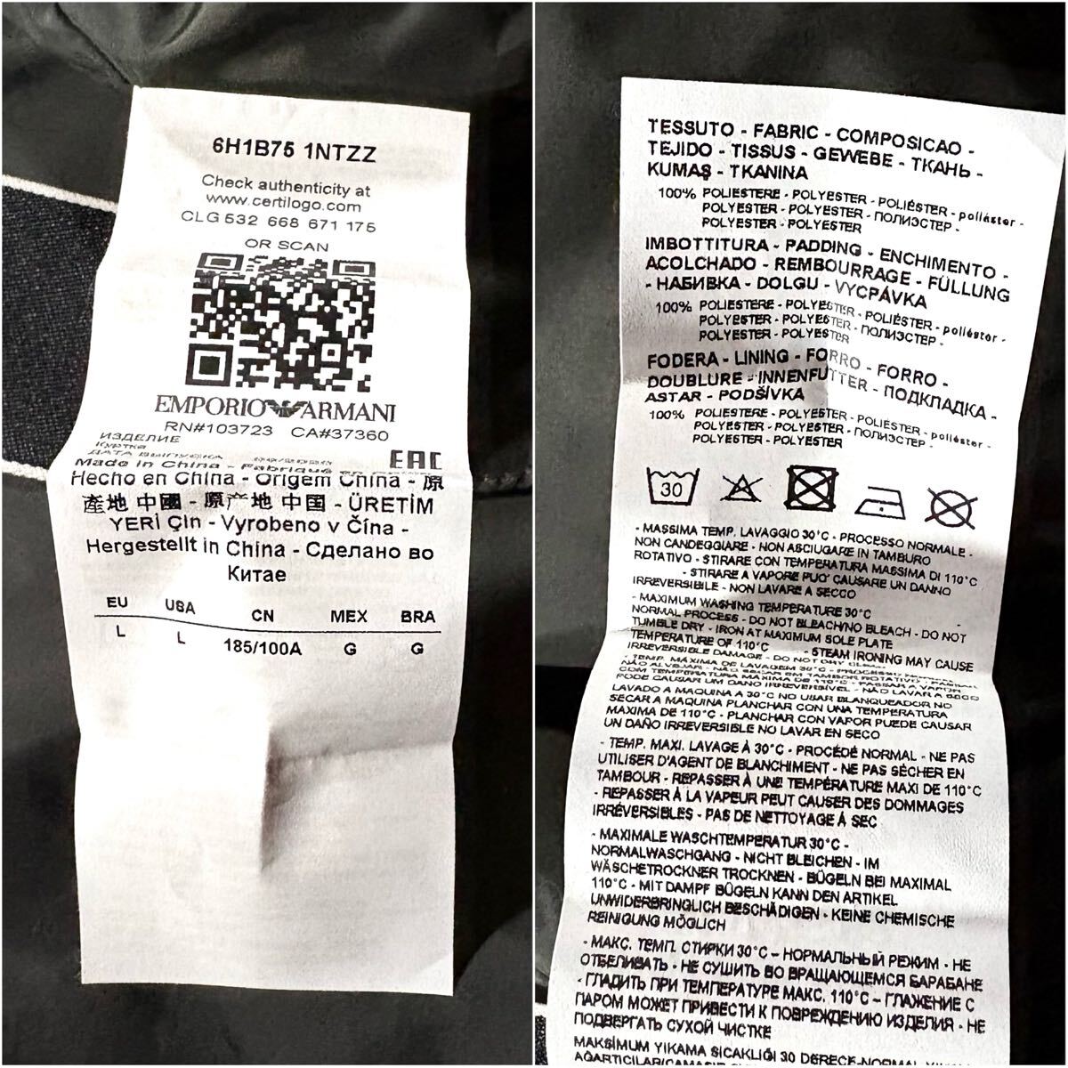 Product name: 極美品/Lサイズ●EMPORIO ARMANI エンポリオ アルマーニ 中綿 エコダウン ジャケット パーカー ダブルジップ イーグルロゴ 裏地ロゴベルト