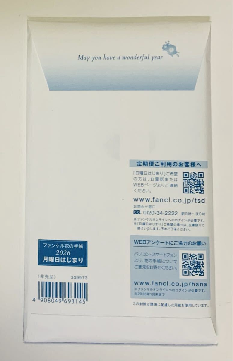 ☆ ファンケル 花の手帳 2026年 月曜始まり ☆ FANCL