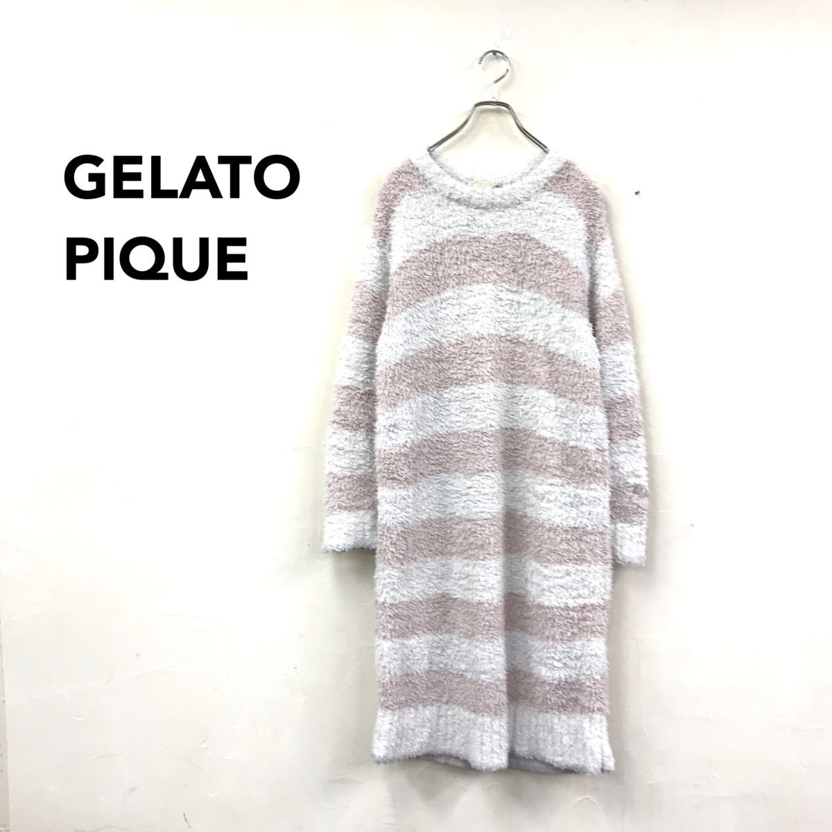 Product name: 2O2142-G◆ GELATO PIQUE ジェラートピケ ルームウェア ロングワンピース ボーダー モコモコ パジャマ ◆ sizeF 白 ピンク ポリエステル