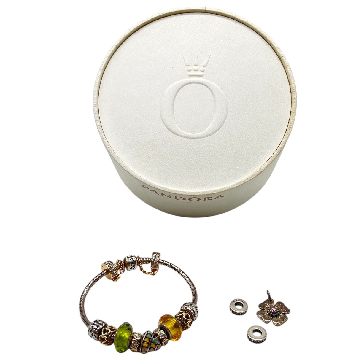 蘇さ(KAY325) アクセサリー PANDORA パンドラ  ブレスレット バングル チャーム ハート 花 箱付き 中古品 60サイズ