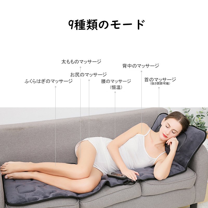 多機能マッサージマットレス マッサージ マッサージ機 全身 腰 足 背中 肩 温熱 9段階 ems 振動 リモコン付 ストレッチ器具 折り畳み