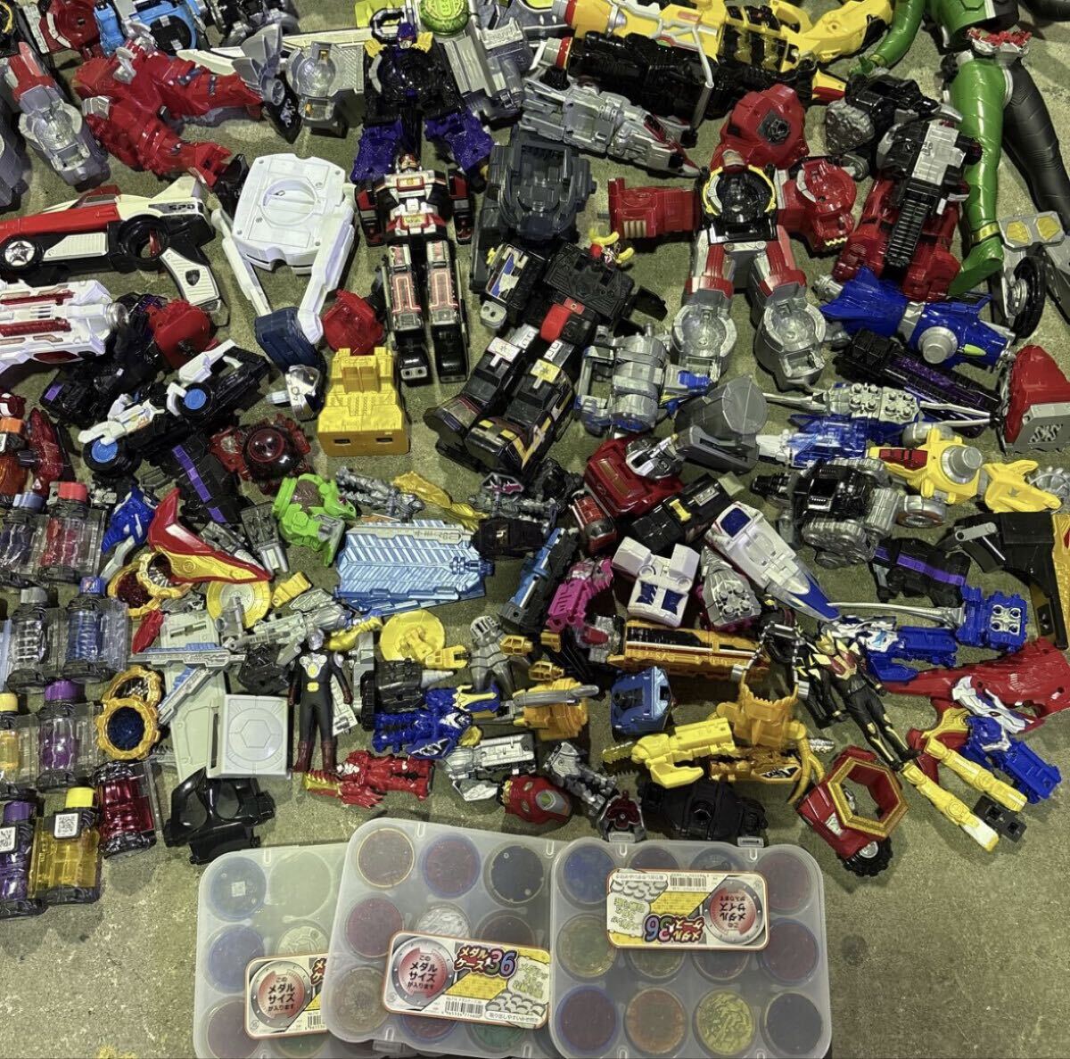 Product name: S726 戦隊シリーズ 変身ベルト 武器 戦隊 特撮 スーパー戦隊 ロボット 大量まとめ 仮面ライダー新1号変身ベルト 約52kg