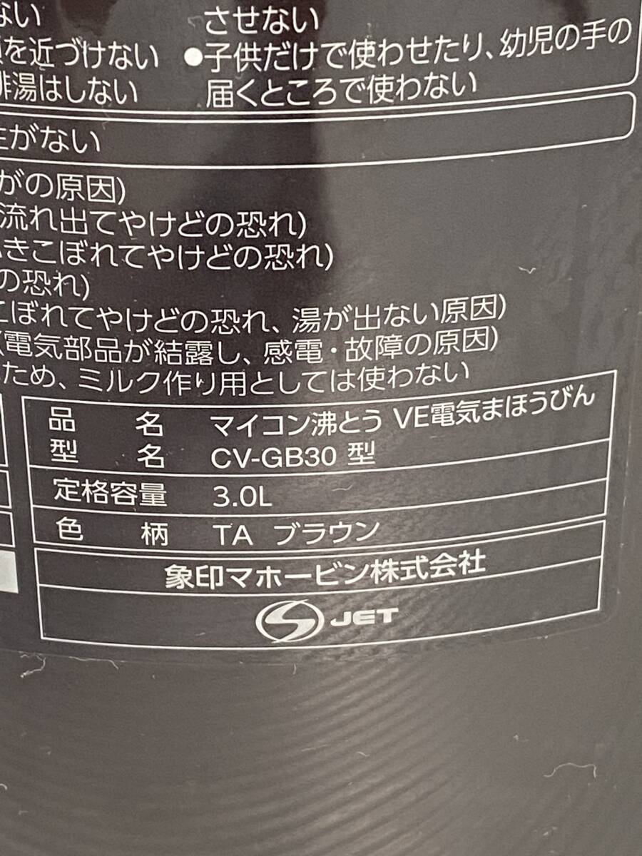 Product name: 2510-278 象印 ZOJIRUSHI 電気ポット 優湯生 CV-DN30 CV-GB30 3.0L 2021年製