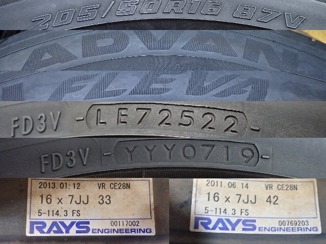 Product name: RAYSレイズ VolkRacingボルクレーシング CE28N 16インチ 7J+33 7J+42 OCD114.3 5H 4本良品 タイヤ ADVAN FLEVA 205/50R16
