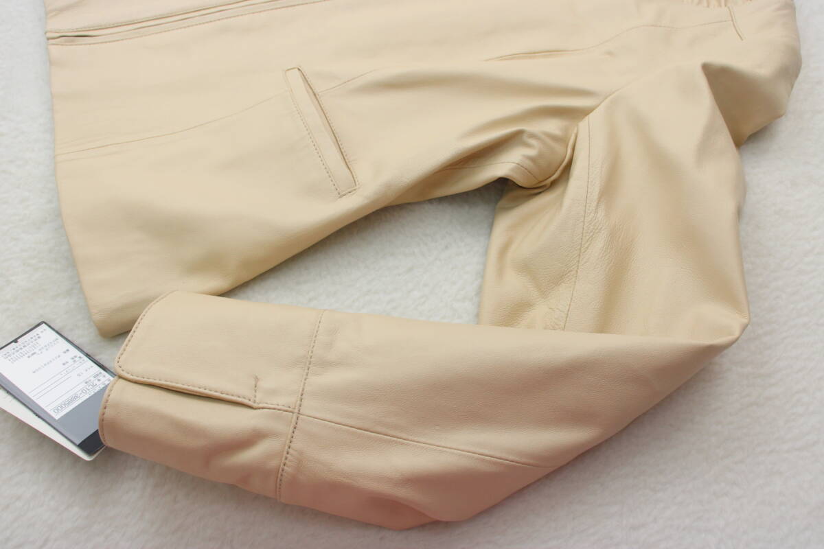 Product name: 5685 新品タグ付き 高級羊革レザーノーカラーZIPジャケット ベージュ7号 定価¥59,000+税