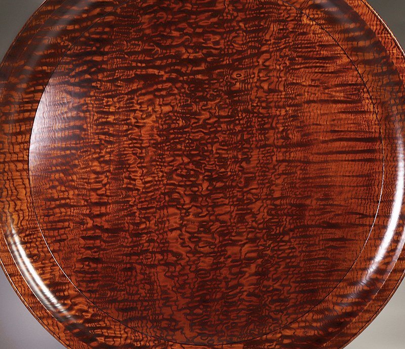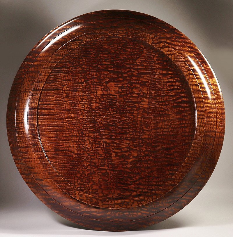 ∇花∇【秀晴】作 1986年拭漆塩地玉杢大盆 直径65cm 共箱付 木工芸
