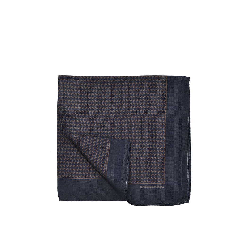 エルメネジルドゼニア Ermenegildo Zegna ポケットチーフ メンズ シルク 100% 幾何柄 ダーク ネイビー