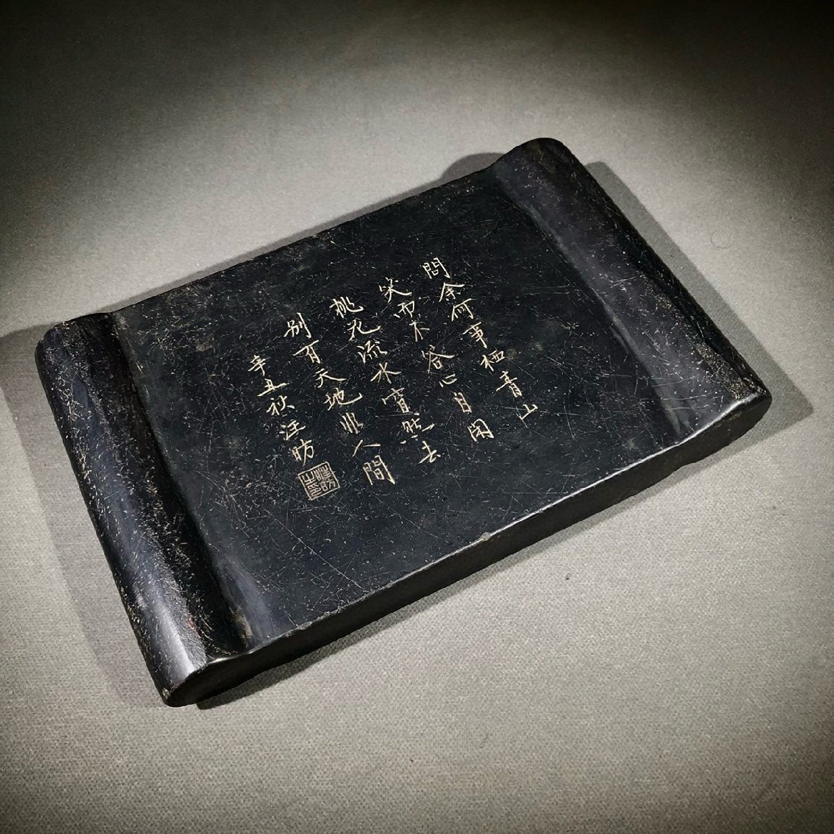 Product name: 【安】清時代 汪ユ銘 端石彫 花鳥石榴魚紋硯 端渓硯 書道具 文房具 極細工 中国古美術 時代物 古董品 341