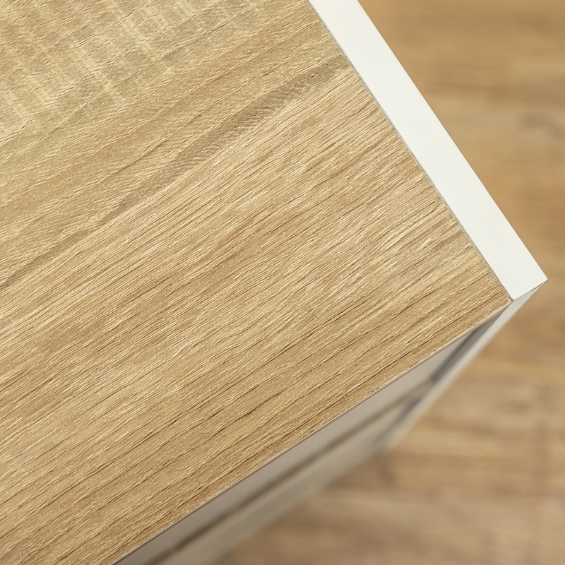 木目柄と無地の素材を組み合わせたツートンカラーのコンパクトな3段ラック。