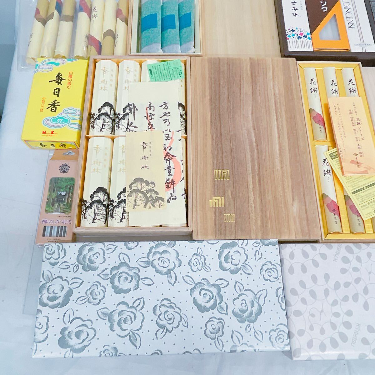 Product name: 10F087 【一部未使用品】線香 まとめ 高級線香 沈香 香樹林 花鳥 花すみれ 花琳 ほのか 他 仏具 供物 一部ケース付 一部開封済有