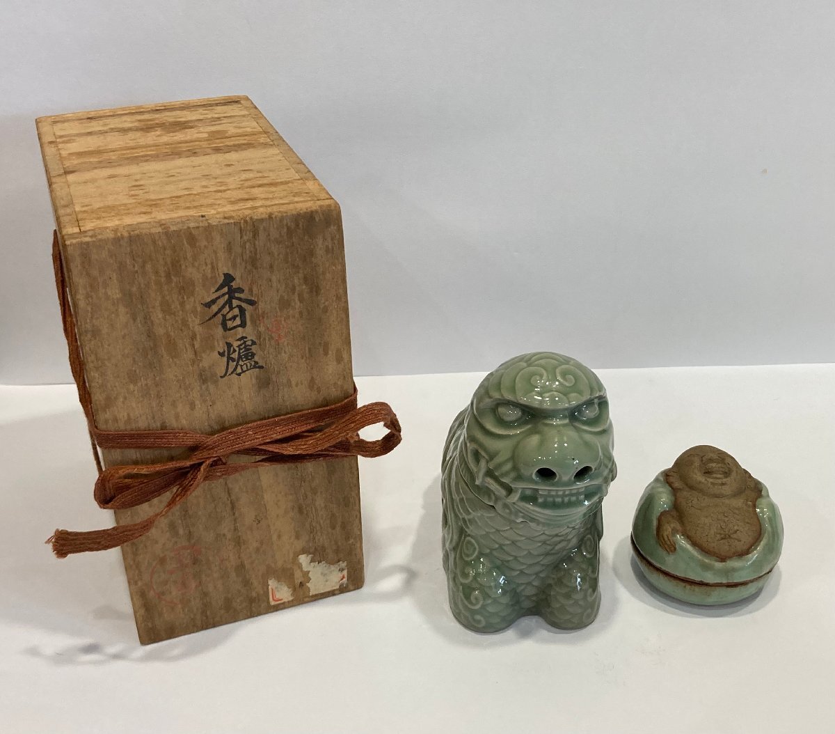 Product name: 1円~【時代物】香炉 2点セット 獅子 真清水蔵六? 布袋