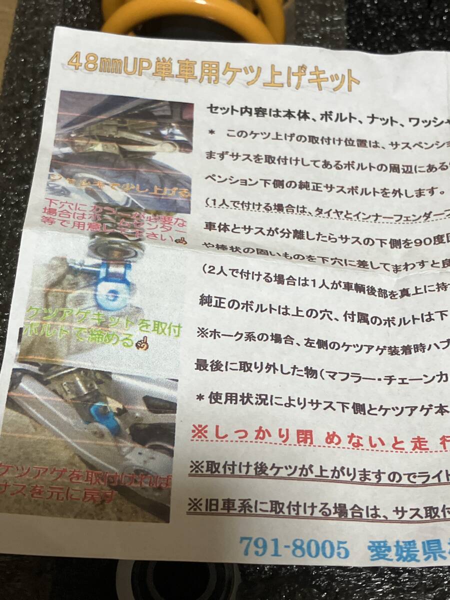 Product name: バイク用リアショック 48mm UP 単車用ケツ上げキット