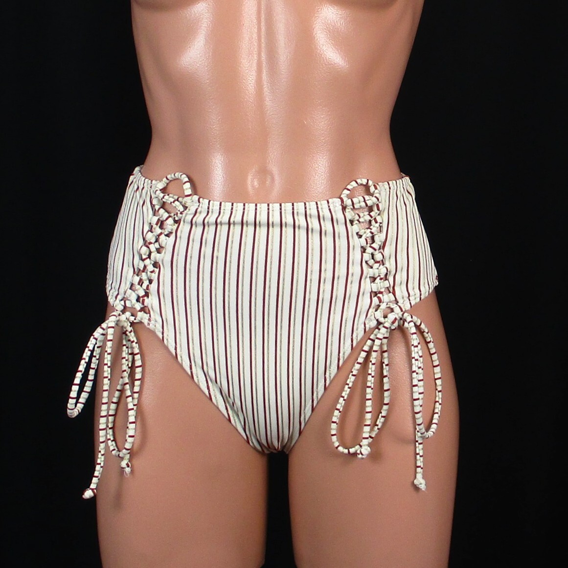 Product name: C6275★1円~訳あり 水着ボトム FOREVER21 おしゃれ ストライプ きらきら ラメ 金 ゴールド ハイウエスト レディースM相当 コスプレ 衣装