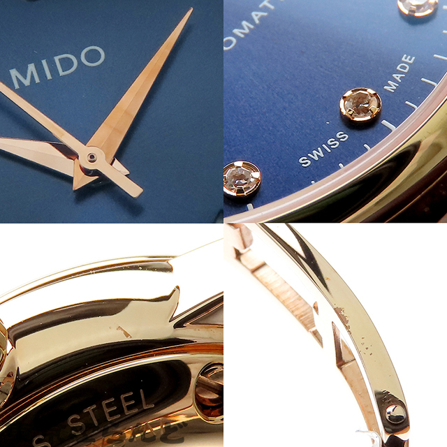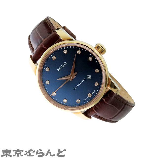 Product name: 101820165 ミドー バロンチェッリ M7600.3.65.8 ミッドナイトブルー レザー ダイヤモンド デイト 箱・保証書付き 腕時計 レディース 自動巻