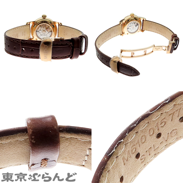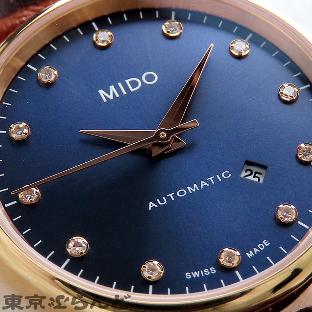 101820165 ミドー バロンチェッリ M7600.3.65.8 ミッドナイトブルー レザー ダイヤモンド デイト 箱・保証書付き 腕時計 レディース 自動巻