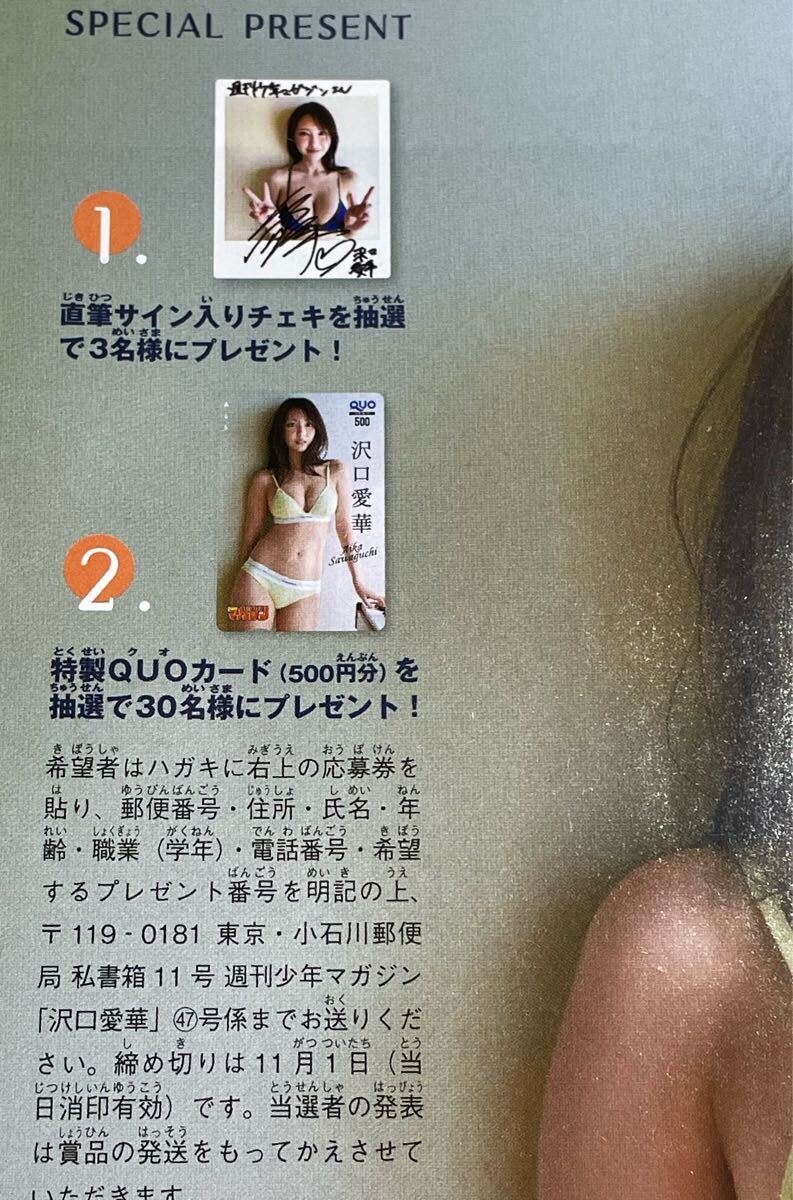 【2枚セット】 少年マガジン 47号 沢口愛華 プレゼント 応募券 クオカード チェキ