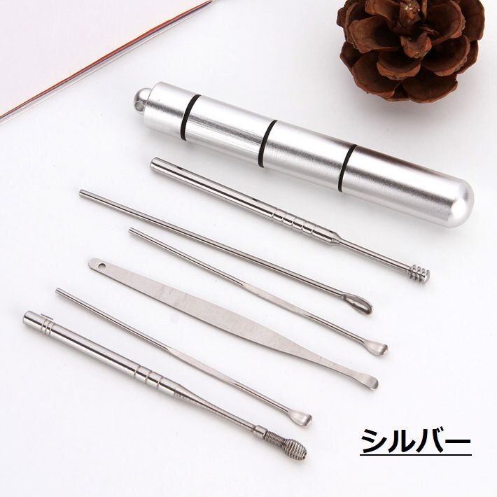 Product name: 耳かき セット ステンレス 耳掃除 耳垢 プレゼント ギフト 携帯ケース付き 水洗い 耳そうじ 7986928 シルバー 新品 1円 スタート
