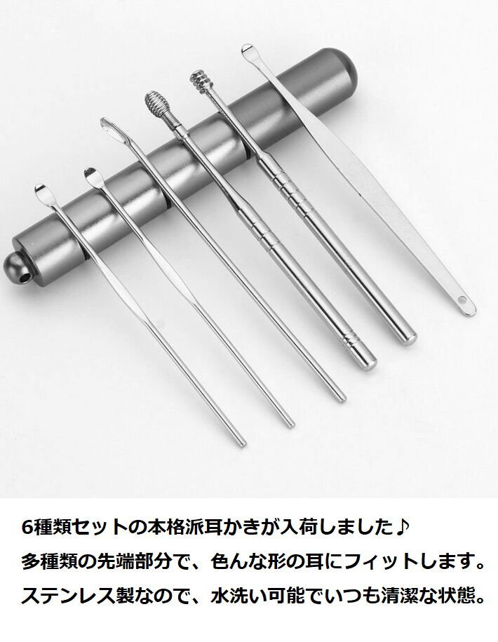 耳かき セット ステンレス 耳掃除 耳垢 プレゼント ギフト 携帯ケース付き 水洗い 耳そうじ 7986928 シルバー 新品 1円 スタート