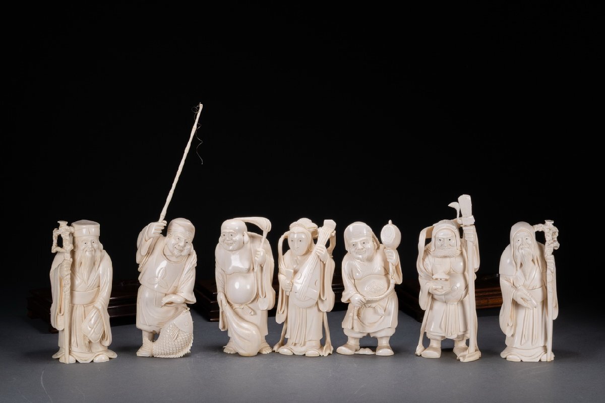 Product name: 【雲錦】某有名オークション購入 時代物 特殊白材 巨大七福神造像2.9㎏ 古置物 古擺件 古美術 時代コレクション7L10-70S8