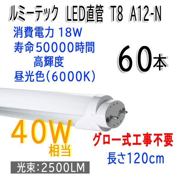 (2)ルミーテック LED直管蛍光灯 T8 40W形 昼光色 A12-N 60本