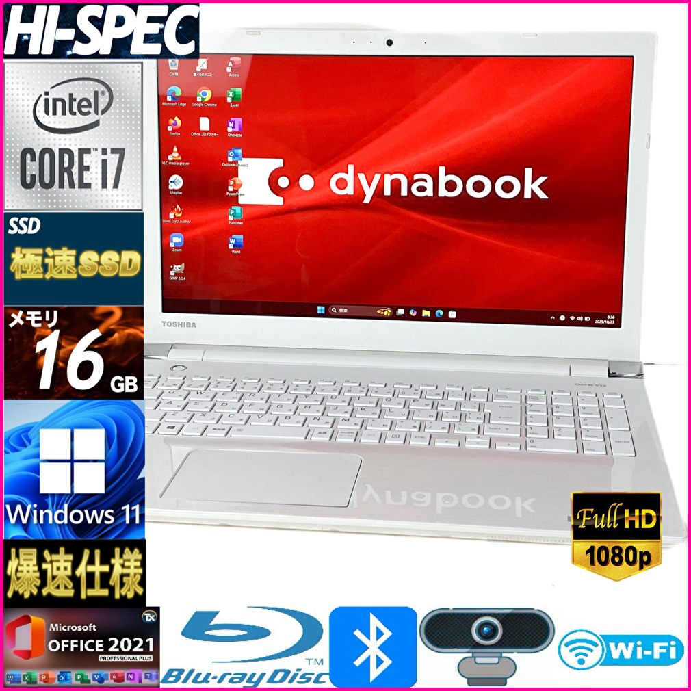Product name: 美品★極速i7【メモリ16GB+爆速新品SSD】Core i7-6500U/Win11/Office2021/フルHD/Blu-ray/Bluetooth/Webカメラ/人気東芝ノートパソコン