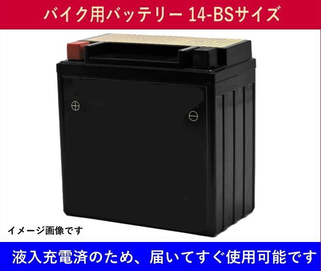 1円スタート バイク用バッテリー 14-BSサイズ(主な互換サイズ:YTX14-BS等の14-BSサイズ)液入充電済