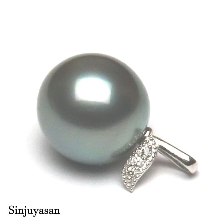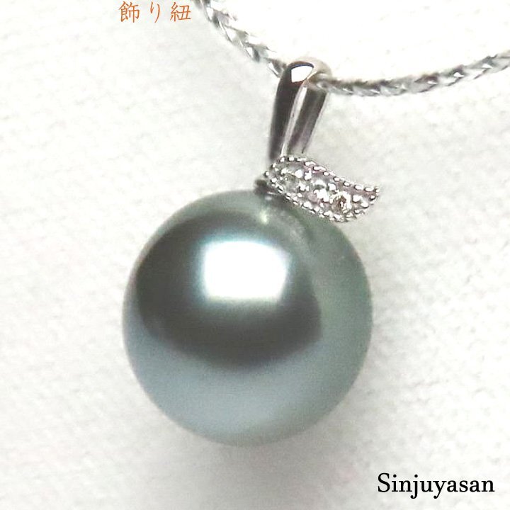 真珠屋さん ナチュラル【天然グリーンブラック】最高の色!10.6mm タヒチ黒蝶真珠 D0.01ct プラチナ Pt900ンダントトップ パール 新品