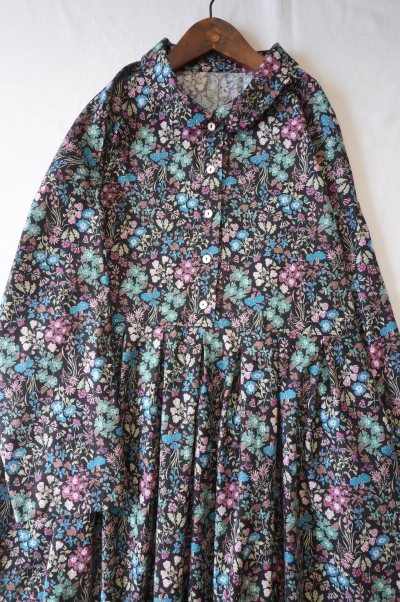ハンドメイド♪cottonビエラ♪ダークブラウン色地♪小花柄OP