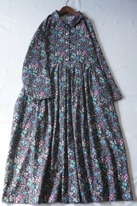 ハンドメイド♪cottonビエラ♪ダークブラウン色地♪小花柄OP♪