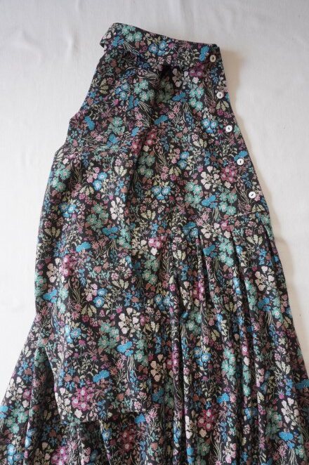 ダークブラウン色地にスモーキーな小花柄がかわいらしい、