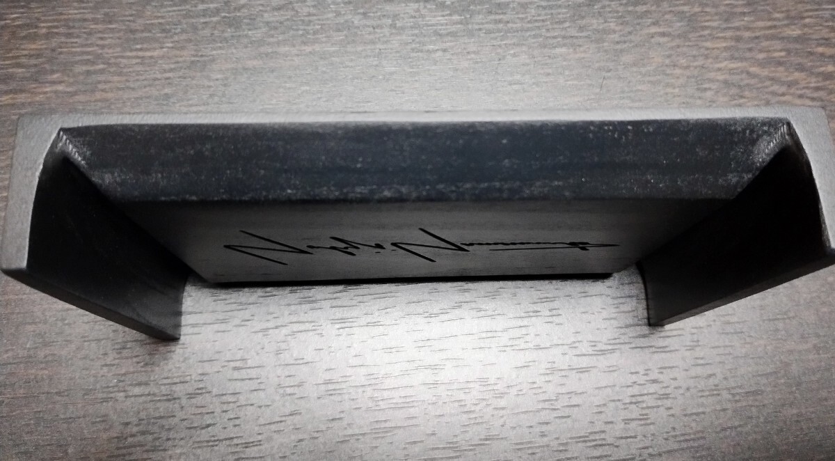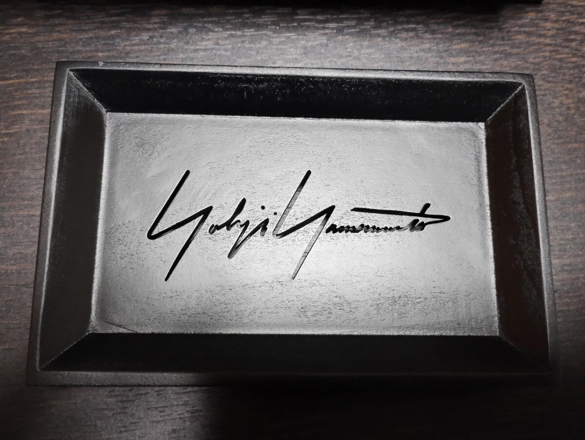 ロゴがくり抜かれた木製のカッコイイトレイ、アクセサリー入れ等に如何でしょうか?