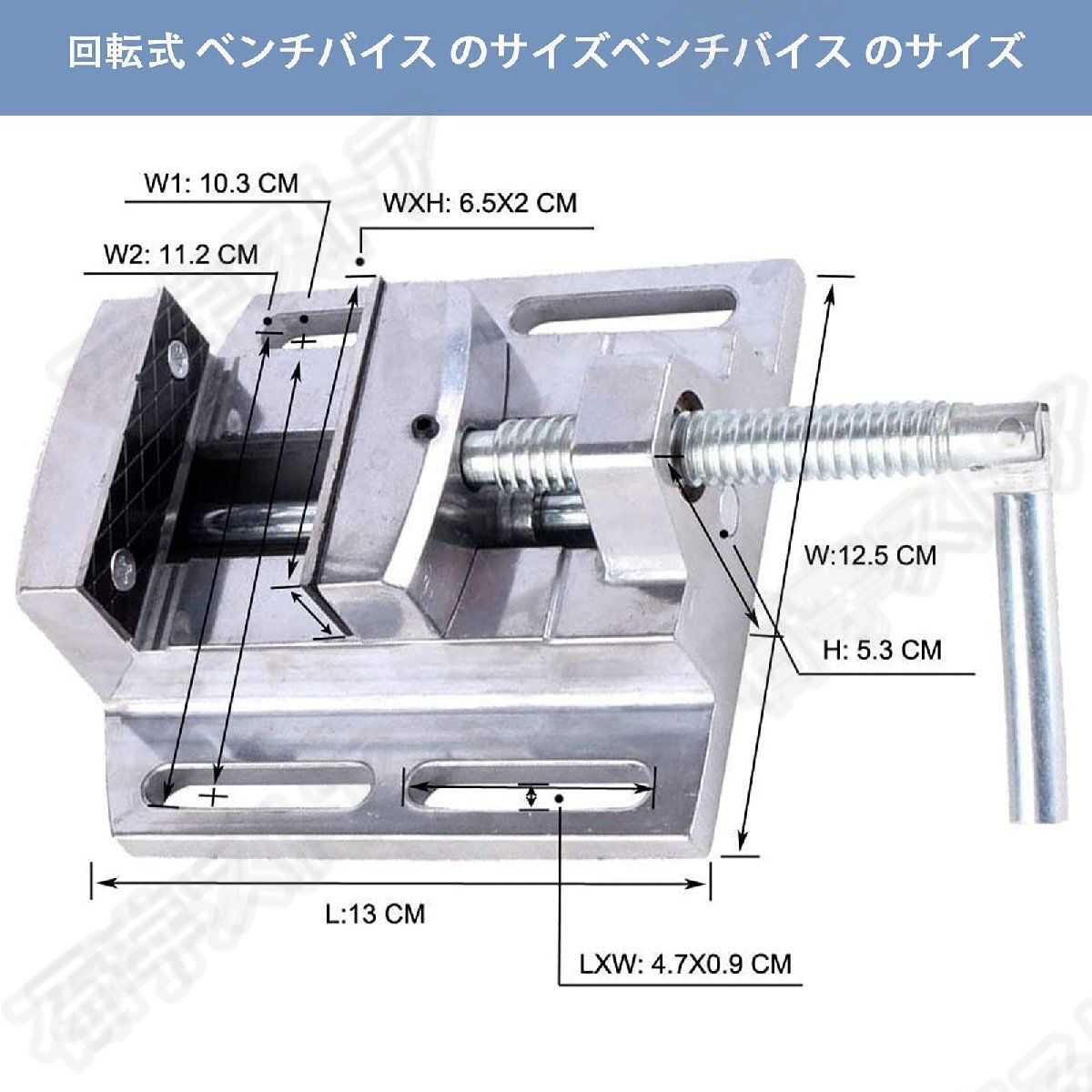 回転式 ベンチバイスサイズ:13cm*12.5cm、開口部横:約70mm。ンドヘルド使用、コンパクトで便利。