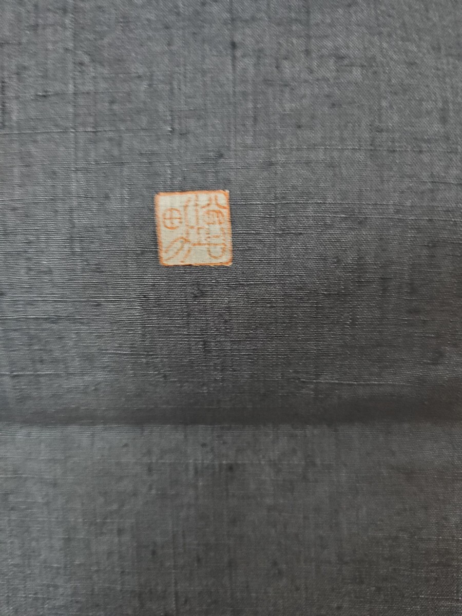 すずや■259正絹結城紬地、染袋帯太鼓柄 青灰系