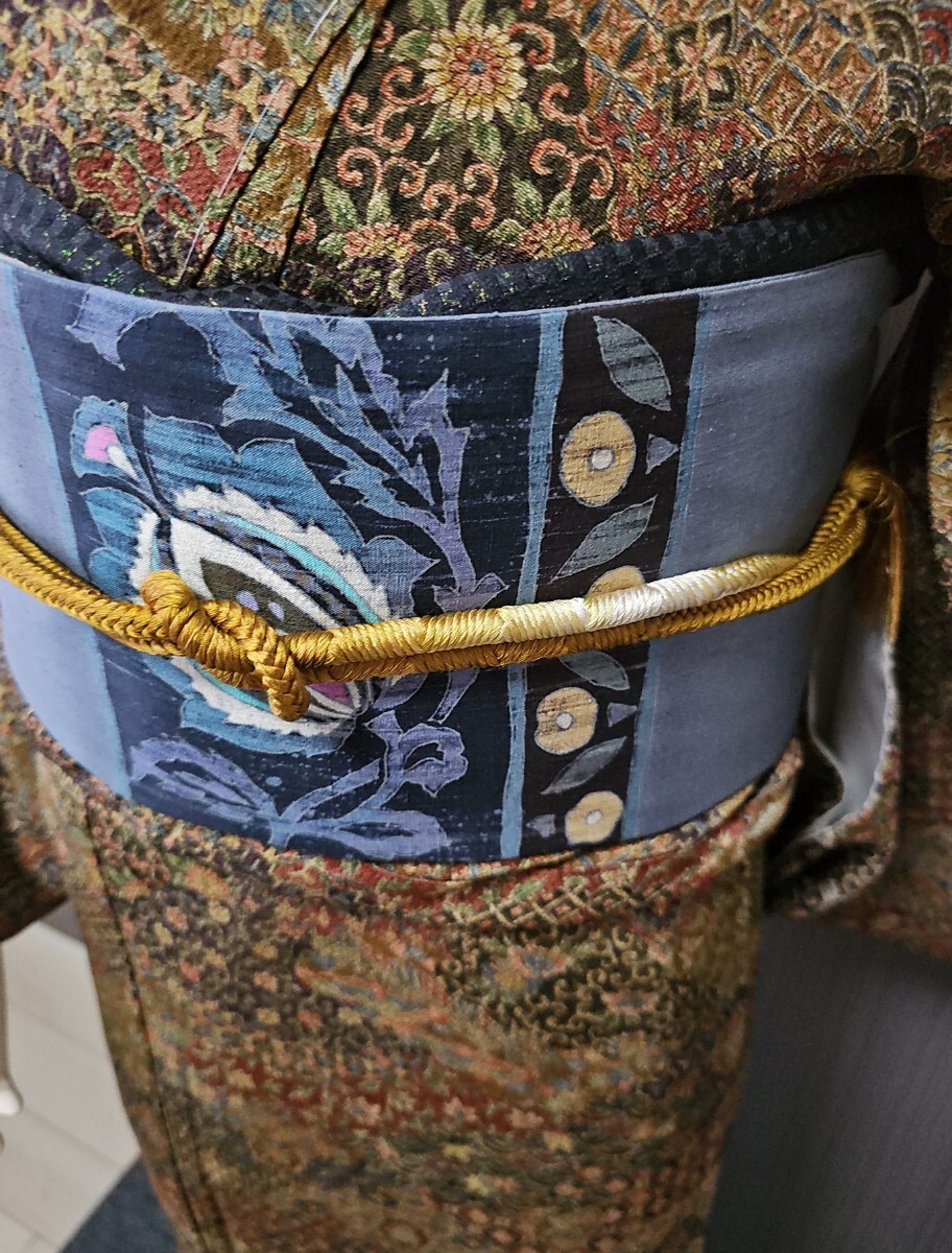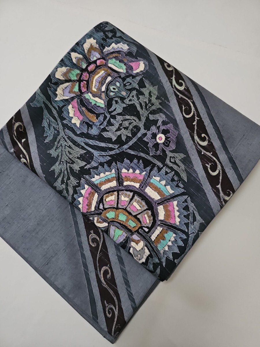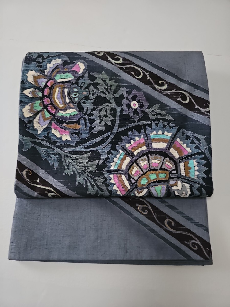 Product name: すずや■259正絹結城紬地、染袋帯太鼓柄 青灰系