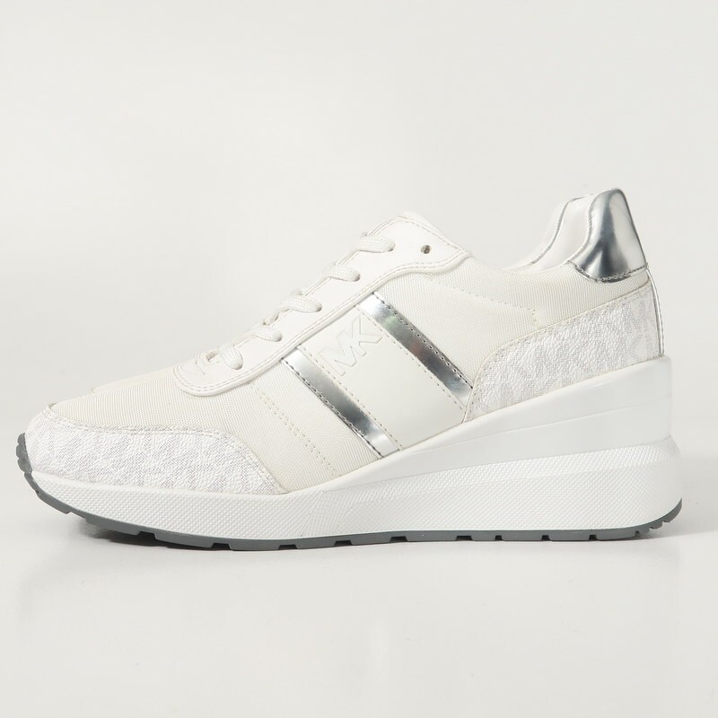 Product name: GS4432*MICHAEL KORS マイケルコース MABEL TRAINER 7.5M(24.5cm相当) MKロゴ ウエッジソール スニーカー 靴 ホワイト×シルバー系