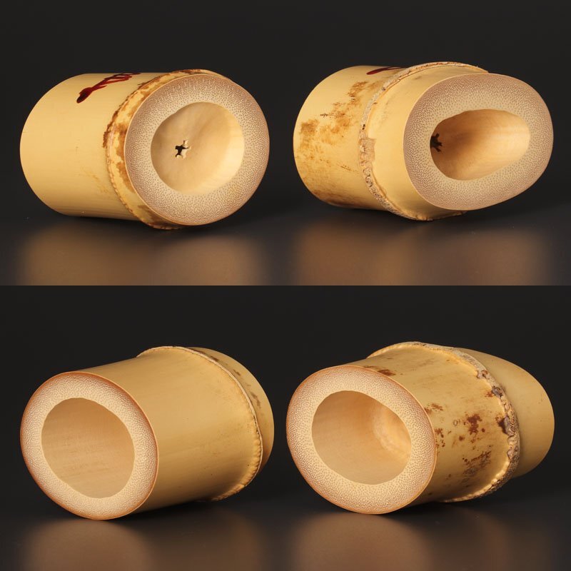非常に珍しい楕円形の竹蓋置です。竹が持つ生命感と景色が活かされており、視覚や触覚をとおして、自然の造形美をお楽しみ頂けます。