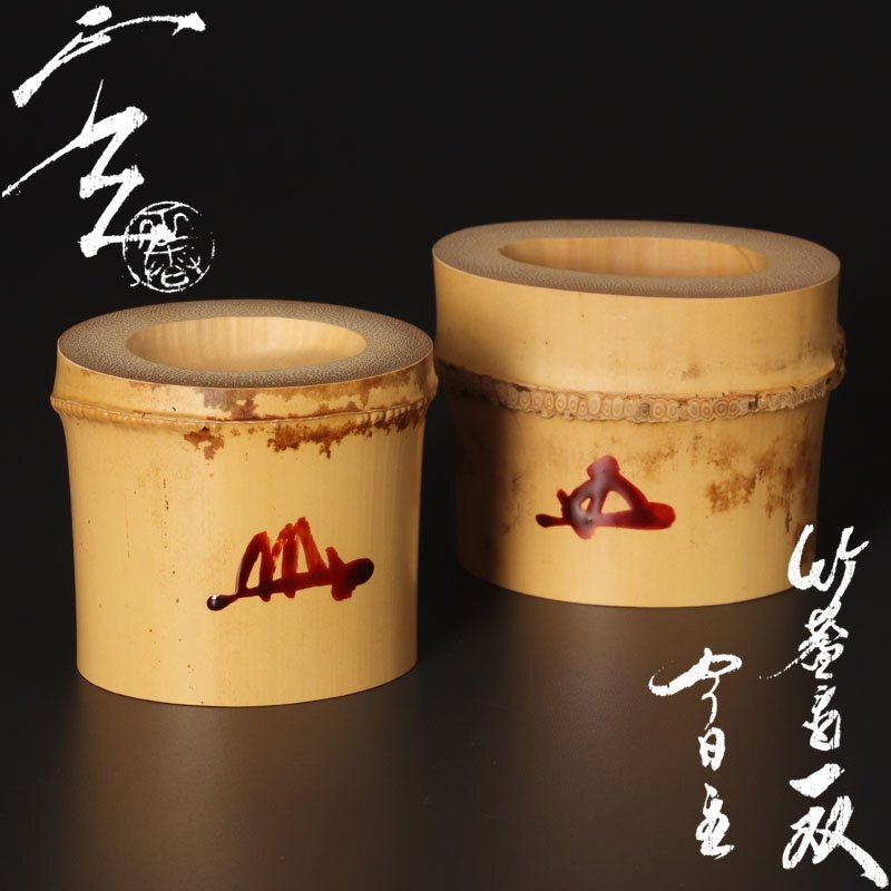 Product name: 【古美味】十三代黒田正玄『鵬雲斎書付』竹蓋置 一双 茶道具 保証品 o1VQ