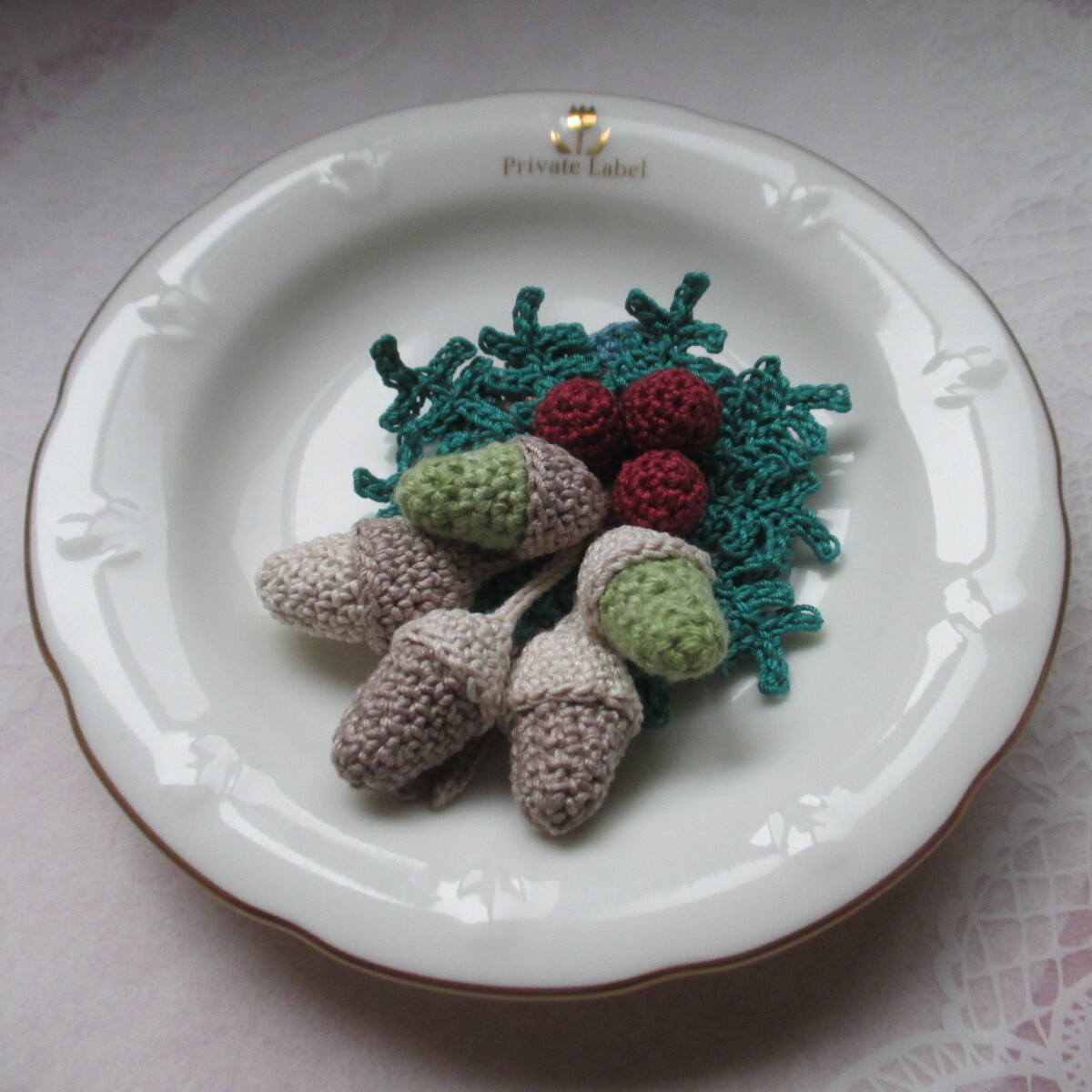ハンドメイド☆レース編み☆松、実、どんぐりのコサージュ、ブローチ
